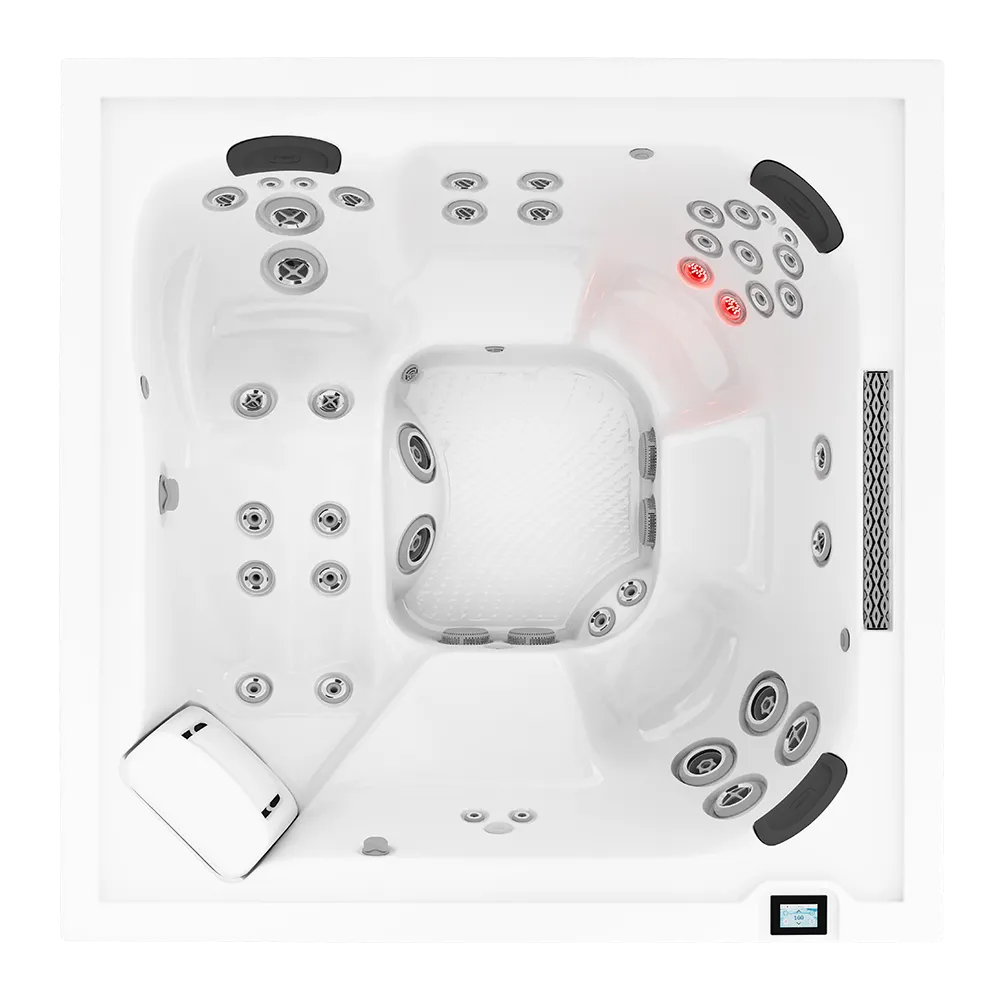 The Jacuzzi® J408L™ sets a new standard for luxury, combining advanced wellness technology with exceptional comfort and design. This premium spa integrates legendary Jacuzzi® hydrotherapy with exclusive Infrared and Red Light therapy, working together to promote faster recovery and deep rejuvenation. Six ergonomic seating options—including a full-body lounge that naturally supports your contours—provide a tailored, immersive soaking experience, while strategically placed jets deliver customizable relief to key muscle groups.