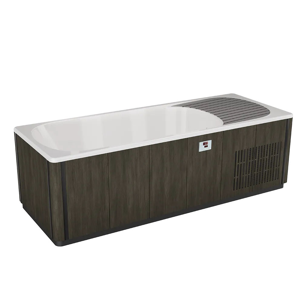 The Kodiak Cold Plunge delivers powerful contrast therapy with a wide 40 to 104 degree temperature range that supports cold immersion, warm recovery, or personalized therapeutic routines. Its deep soaking area and non slip comfort mats create a stable and immersive experience, while the insulated shell and lockable insulating cover help maintain temperature and energy efficiency. A multicolor LED interior light enhances the atmosphere for early morning or nighttime sessions, and the 120V plug and play design makes installation simple for indoor or outdoor spaces. Built with a durable steel frame, ABS base, tool free removable panel, and an easy drain spout with shutoff valve, the Kodiak is engineered for reliability and convenience in any wellness setting.